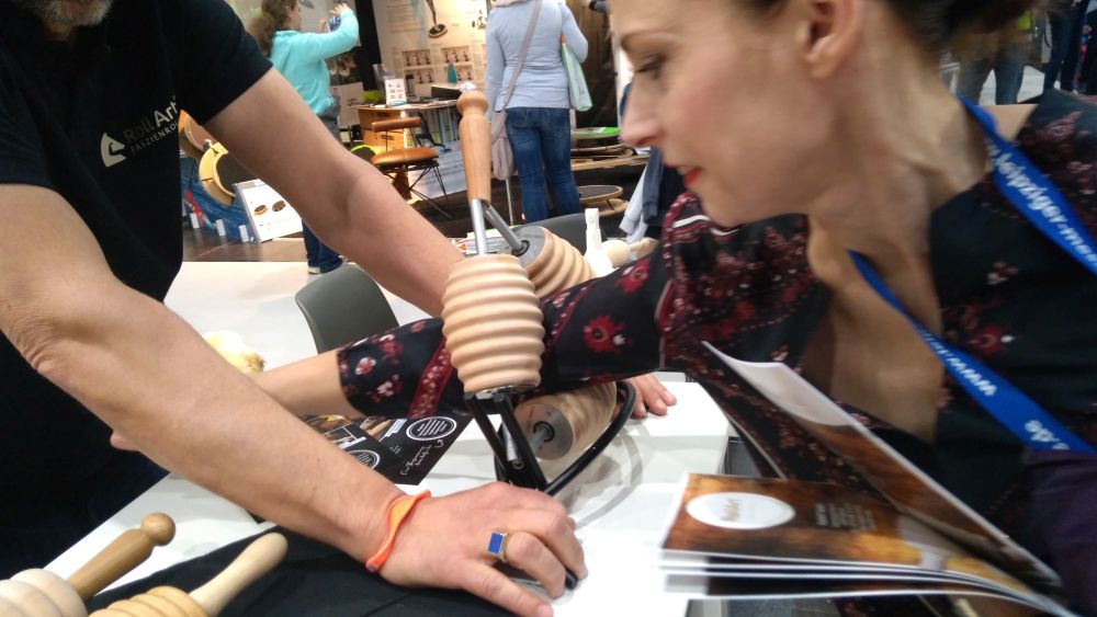 Mozgásterápia terén még mindig az SMR a nyerő. Egyre drágábbak az eszközök, vibrálnak, rezegnek, lassan már altatódalt is énekelnek, de azért szeretjük őket. Bevallom, élveztem a vibrációs hengert, olyannyira, hogy rendeltünk is néhányat, hamarosan Ti is kipróbálhatjátok ezeket a képzéseken. Nagy újdonság egyébként nincs ezen a téren, a tüsilabda továbbra is tüsilabda, a henger pedig henger. Egy érdekességet azért láttunk, a fából, kézzel készített SMR hengerek már-már műalkotás számba mennek (sajnos az áruk is), különösen tetszett a kar hangerezésére alkalmas kreatív SMR háromszögecske, amely - ki tudja, miért - engem a kürtőskalács sütő formára emlékeztet.