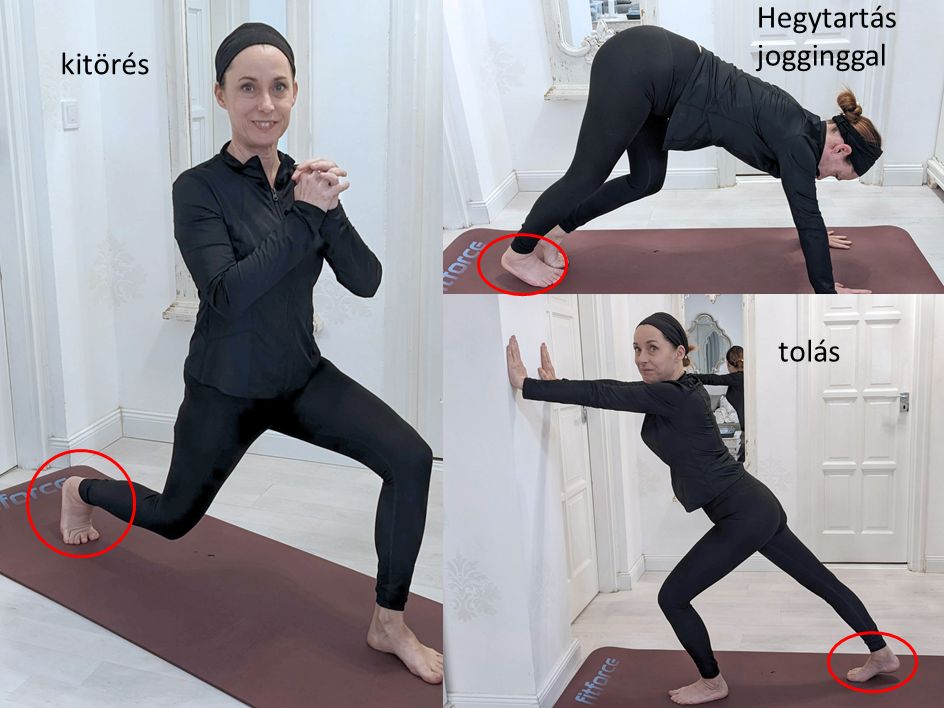 Bár a szöveti feltételek megteremtése (1-es és 2-es pont) alapvető fontosságú, önmagában sajnos korántsem elegendő. A megváltozott mozgásmintákat is korrigálni kell, méghozzá célzottan, az idegrendszer „újratanítására” fókuszálva, az esetek nagy részében ugyanis maguktól nem rendeződnek. Általános receptet nem tudok adni, hisz minden sérülés és minden páciens más. Az én esetemben például az a megoldás, természetesen jócskán leegyszerűsítve, hogy néhány hétig – míg az idegrendszerem vissza nem szokik az optimális mintára – bizony akarattal (belső kontrollal) oda kell figyelnem arra, hogy járás közben engedjem visszahajolni a lábujjaimat. Ehhez azonban számos olyan apróságnak tűnő dologra is oda kell figyelni, mint például az okos cipőválasztás. Merevebb talpú cipőben ugyanis akadályozottá válik a talp finommozgása. És persze sok olyan mezítlábas gyakorlatot kell végeznem, ahol egy lábon kell egyensúlyoznom (mérlegállás, egylábas guggolások stb.), hogy visszanyerjem a talp finom adaptációs képességét, illetve lábujjhegyre kell állnom (pl. kitörések, hegytartás, szántolás), hogy megszűnjön a kinetofóbia, azaz az agyam mozgástól (pl. a lábujjak visszafeszítésétől) való tudatalatti félelme. Az egyik legjobb gyakorlat pl. a hegytartás, pláne ha joggolunk is közben. Ilyenkor ugyanis úgy kell felváltva visszafeszíteni a lábujjakat, hogy közben erőt is kifejtenek, hisz támaszkodunk rajtuk, ráadásul egyidejűleg nyúlik is a talp és a lábszár hátulsó része az esetleges mobilitásproblémák oldására. Ez bizony az egyik legfunkcionálisabb mozgásminta-építő, erősítő és ellenállásos nyújtó gyakorlat az én esetemben.