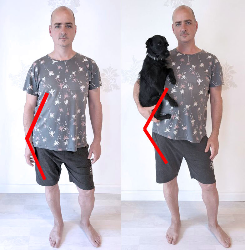 Gyakori, hogy álldogálás közben a test súlyát az egyik lábunkra terheljük, és még a csípőnket is jóóóóól áttoljuk a támaszkodó láb fölé. Nem ritkán mindezt cipekedés – mondjuk egy kisgyermek (vagy egy Blankához hasonlóan cuki kiskutyus) hordozása – közben tesszük, ráadásul jellemzően mindig ugyanazt a lábat terheljük. Nos, melegen javaslom, hogy gyorsan szoktassuk le magunkat/a páciensünket erről, mert számos olyan panaszhoz vezethet, amelyről álmainkban sem gondolnánk, hogy egy egyszerű rossz szokás következménye!