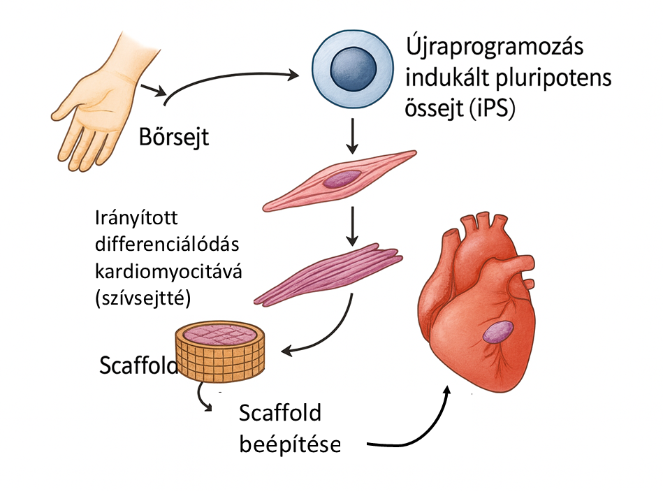 - Speciális növekedési faktorokkal az iPS sejteket átalakítják a szükséges sejtté (ín, porc stb.)