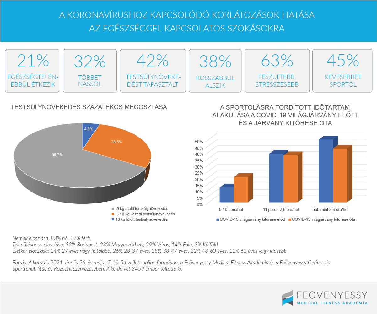 Az orvostudomány már a járvány kitörése óta vizsgálja a kérdést, hogyan hatottak a korlátozások az emberek általános egészségére. Több nemzetközi kutatás is felmérte a táplálkozással, illetve a fizikai aktivitással kapcsolatos szokások átalakulását, valamint a járvány mentális egészségünkre gyakorolt hatását, ugyanakkor nagy mintán végzett hazai kutatásból származó adatok mostanáig nem álltak rendelkezésre.