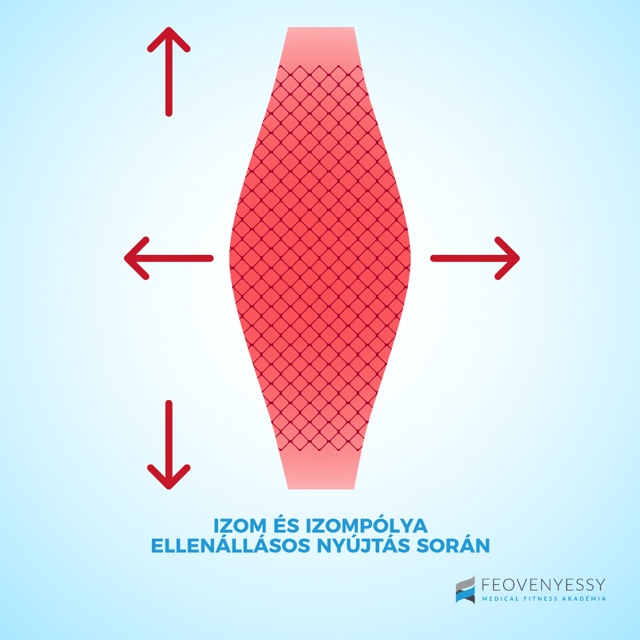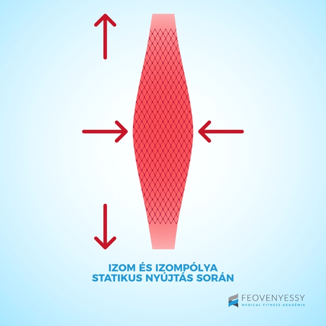 Statikus nyújtás során az izom meghosszabbodik, tehát az izomrostok megnyúlnak, az átmérője azonban csökken, tehát az izom vékonyodik. Ez azt jelenti, hogy a hálószerű kötőszövetes burok nem kerül igazán nyújtott helyzetbe, hisz - Mari nénisen fogalmazva - amennyit hosszában nyúlik a háló, azt keresztirányban "behozza". Ahogy az alábbi képen is látható, statikus nyújtás során a négyzetrácsból rombuszrács lesz, a négyszögek területe (és kerülete) azonban nem nő, magyarul a fascia nem (vagy legalábbis nem optimálisan) nyúlik meg.