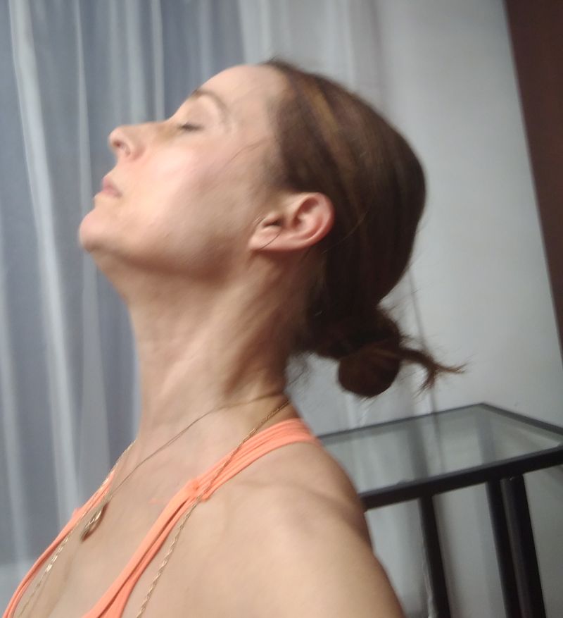 Próbáld ki a következőt: képzelj el egy lufit, amely finoman emeli a fejed és megnyújtja a gerinced. Most könnyedén hajlítsd hátra a nyakad úgy, hogy a nyak és az áll közti távolság nem nő (tehát nem esik hátra a fejed és nem törik meg egy pontban a nyakad). A mozdulat során a lufi folyamatosan emeli a fejet. Ha megfelelően hajtottad végre a gyakorlatot, a nyakadat körülvevő izomzat aktív, a nyak harmonikusan meghajlik és nincs egyetlen töréspont sem. A mozgás könnyed, kényelmes, nem okoz panaszt. Ezt hívjuk NYAKI EXTENZIÓNAK. A gyakorlat valahogy így néz ki: